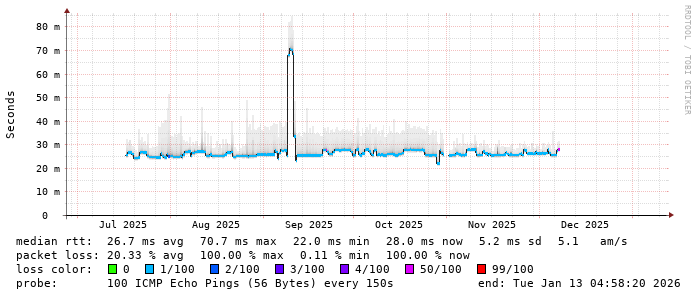 Last 100 Days from smokeping.echotech.ro